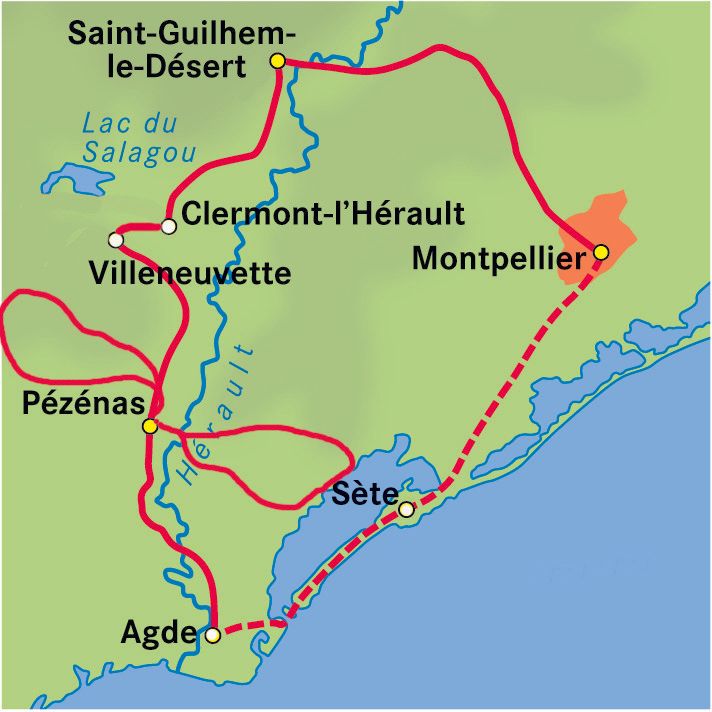Montpellier ► Saint-Guilhem-le-Désert ► Pézenas ► Villeveyrac ► Mèze ► Agde ► Montpellier