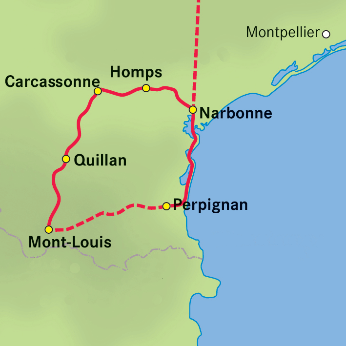 Narbonne ► Perpignan ► Mont-Louis ► Quillan ► Carcassonne ► Homps ► Narbonne